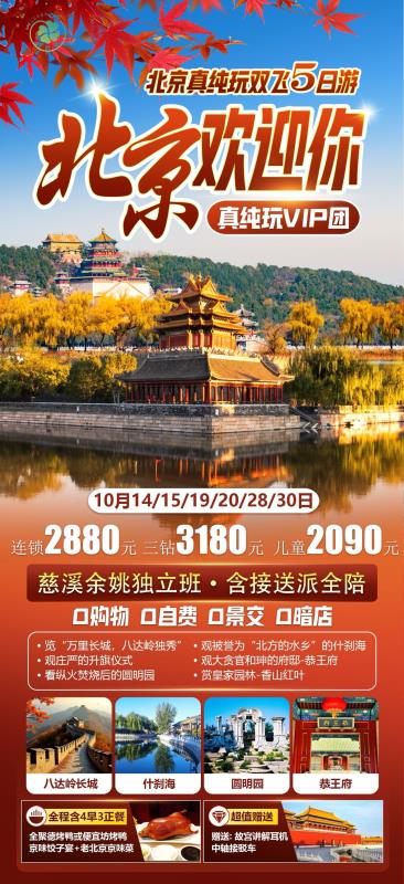 【天天旅游】北京真纯玩双飞5日(慈余独立班)