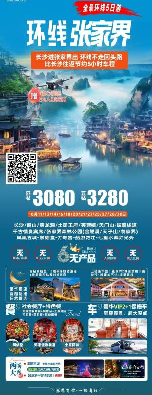 【天天旅游】【锦绣湘西—五星张家界一价全含】沙/韶山/凤凰古城/墨戎夯吾苗寨/芙蓉镇/