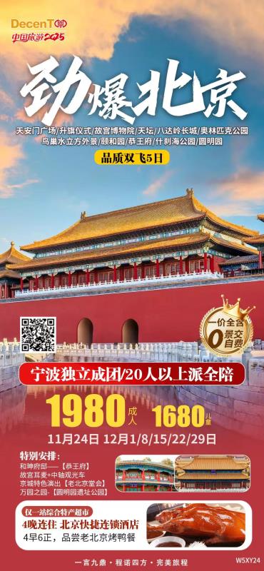 【天天旅游】北京真纯玩双飞5日(慈余独立班)